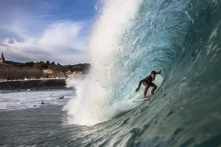 La ola de Mundaka está considerada la mejor ola izquierda de Europa y por eso se reúnen en este precioso y pequeño enclave de la costa bizkaina los mejores surfistas de todo el mundo. Puede llegar a alcanzar los 4 metros de altura y los 400 metros de largo.
