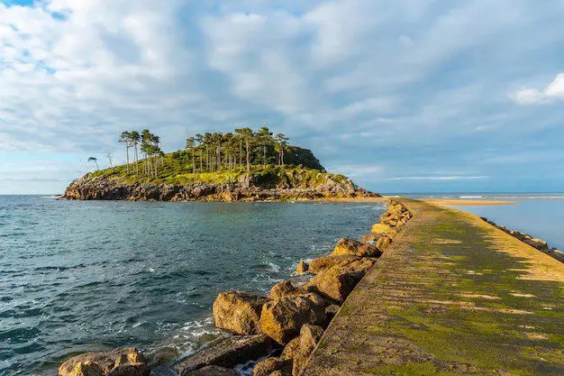 Es una isla intermareal, por lo que cuando hay pleamar se queda totalmente aislada. El camino se llena de agua y la única forma de volver es nadando.